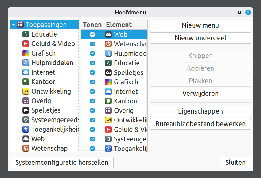👉 Kies ‘Menu bewerken’. Je ziet nu dit scherm.