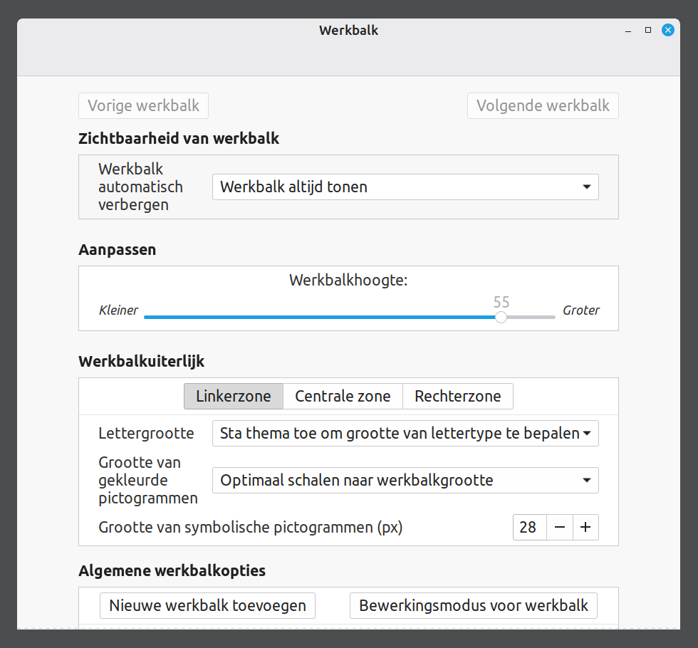 👉 Klik op – of + om de grootte van het Linux Mint-pictogram te vergroten of te verkleinen.